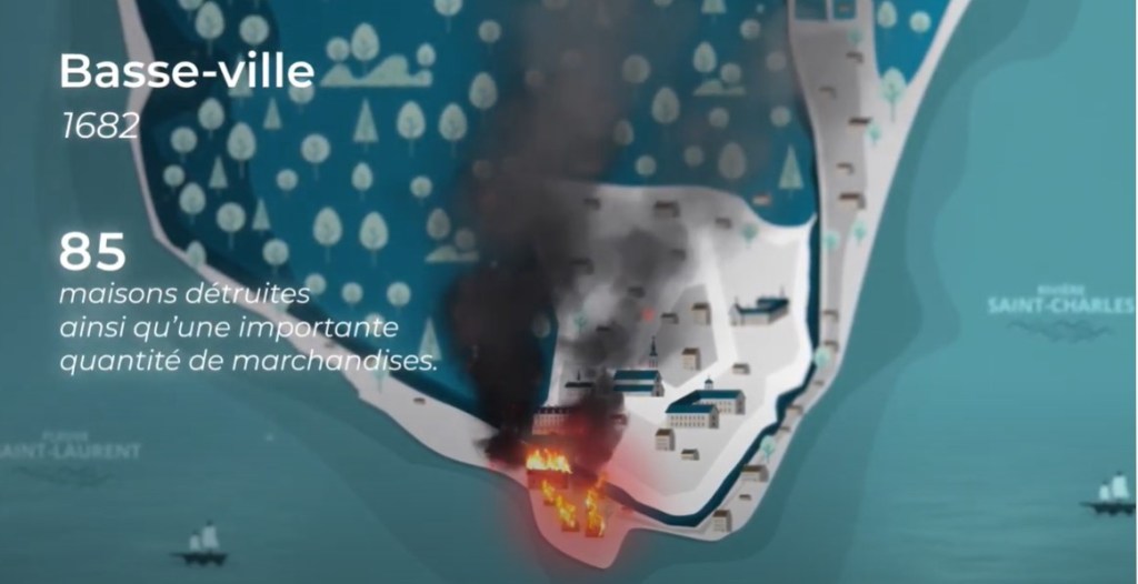 Le 5 aout 1682, au matin, Jacques voit de la fumée qui se dirige vers la pointe de l’ile d’Orléans. Rapidement, il apprendra que la quasi-totalité de la basse-ville de Québec a été rasée par un incendie.