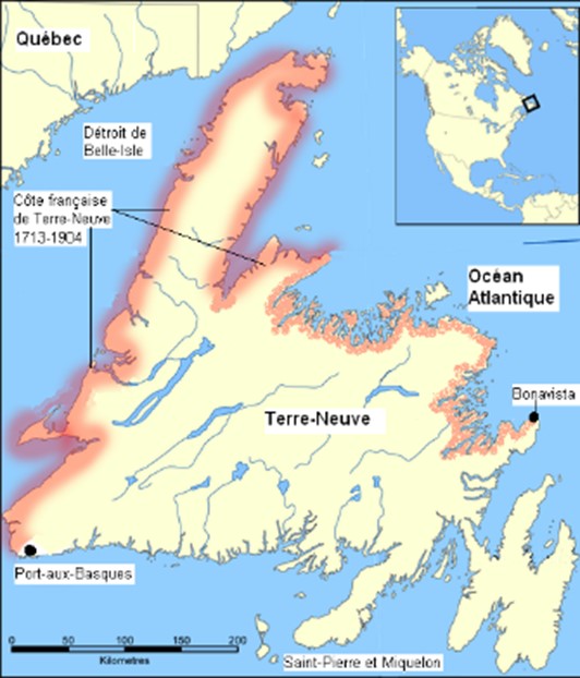 En 1713, c’est la fin de la guerre de Succession d’Espagne, la fin des hostilités entre les Anglais et le Français, et c’est la signature du Traité d’Utrecht. L’Acadie française est cédée aux Britanniques, sauf l’Île-du-Cap-Breton et l’Île du prince Edouard; de même que le territoire de la baie d’Hudson et Terre-Neuve, sauf un droit de pêche sur le « french shore », droit qui sera abandonné par la France en 1904.