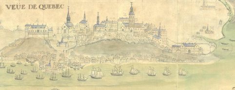 En 1726, la population de la Nouvelle-France atteint 29,396 habitants. Ci-contre une vue de Québec en 1729.