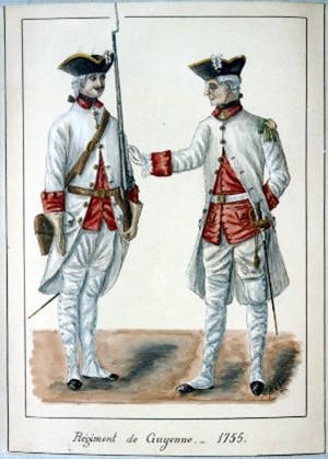 Afin de renforcer sa défense, la France envoie deux bataillons du régiment de Guyenne, soit 3,600 hommes commandés par le baron De Dieskau. (Ce régiment participera aussi à la bataille des Plaines d’Abraham!)