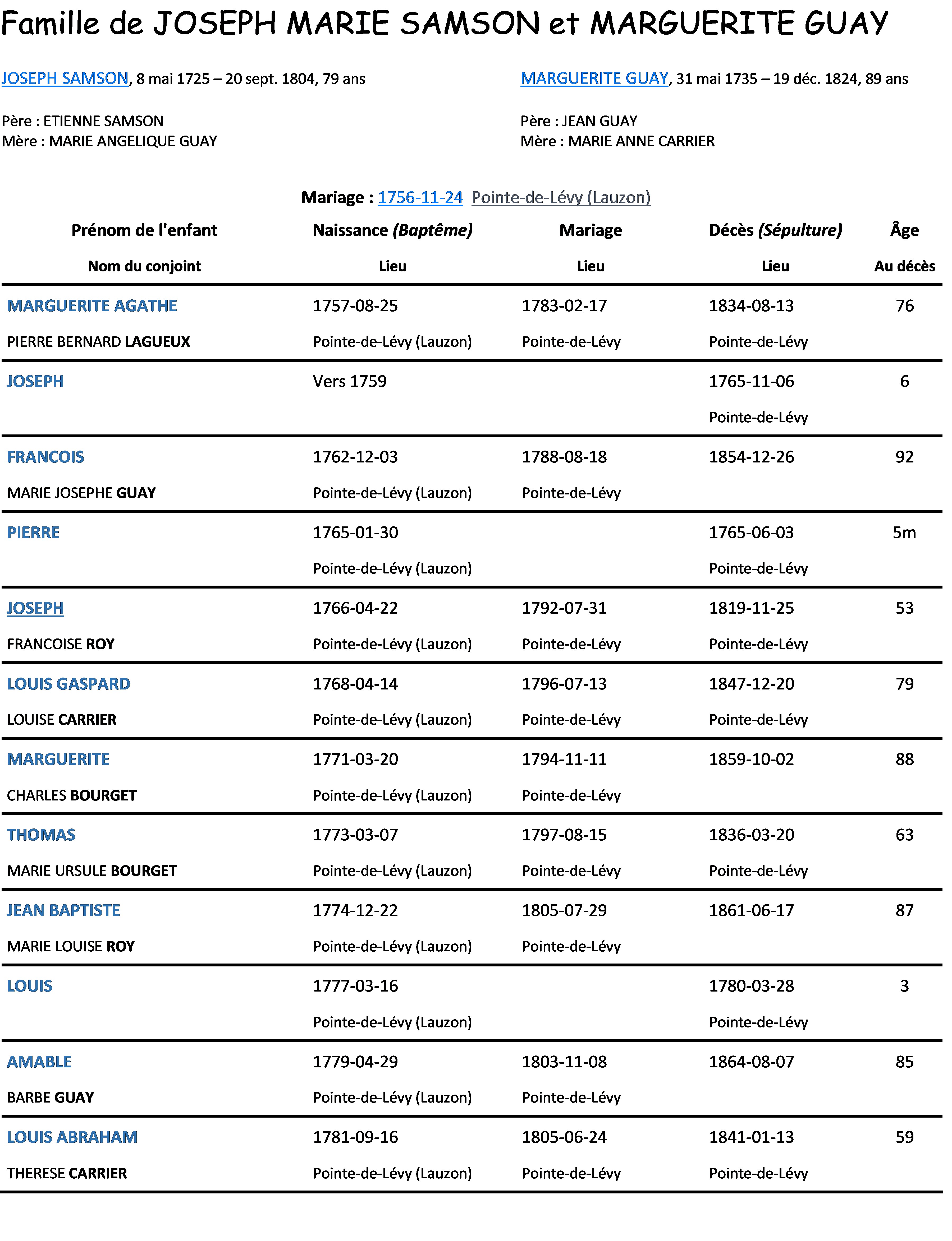 Notre famille Samson