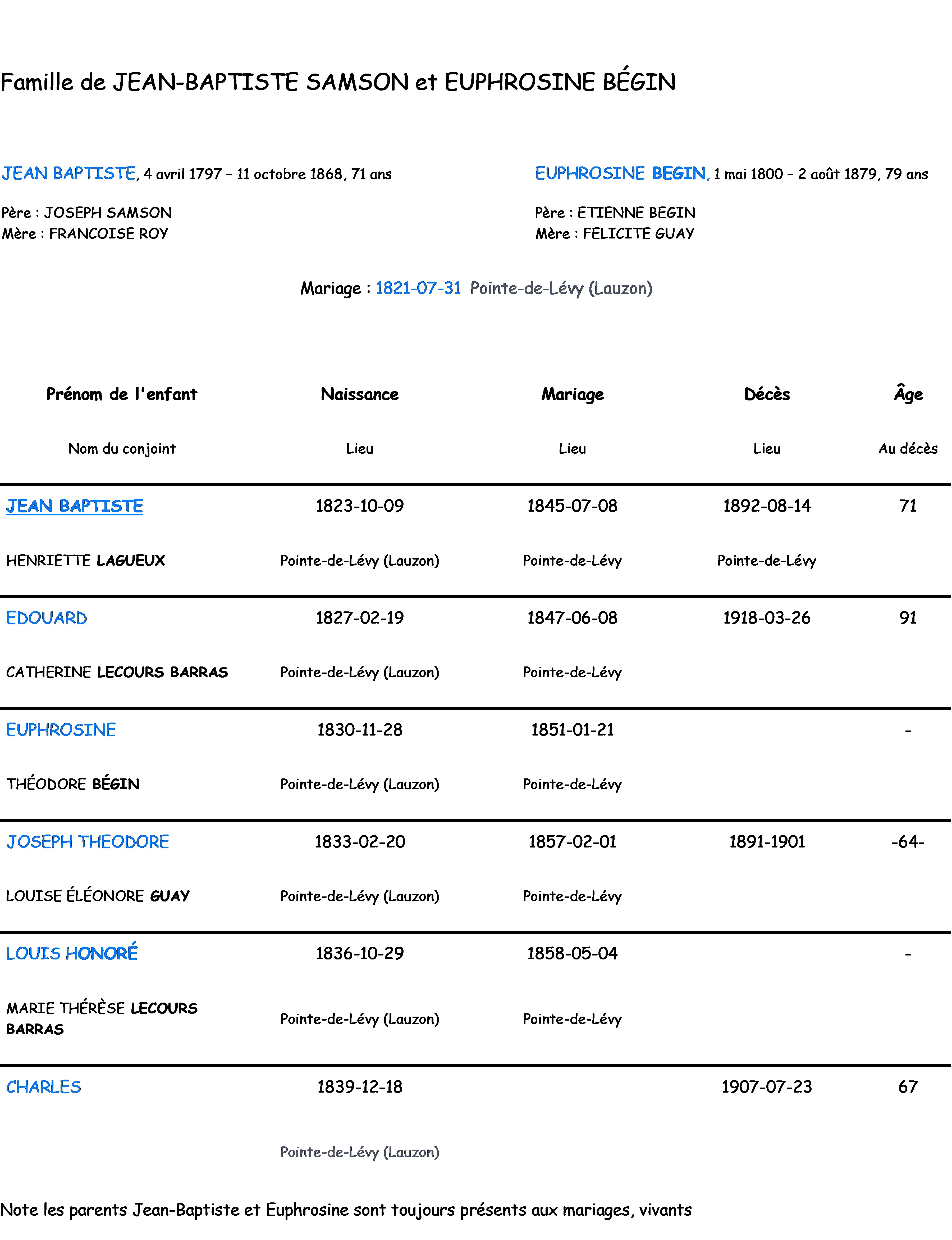 Notre famille Samson