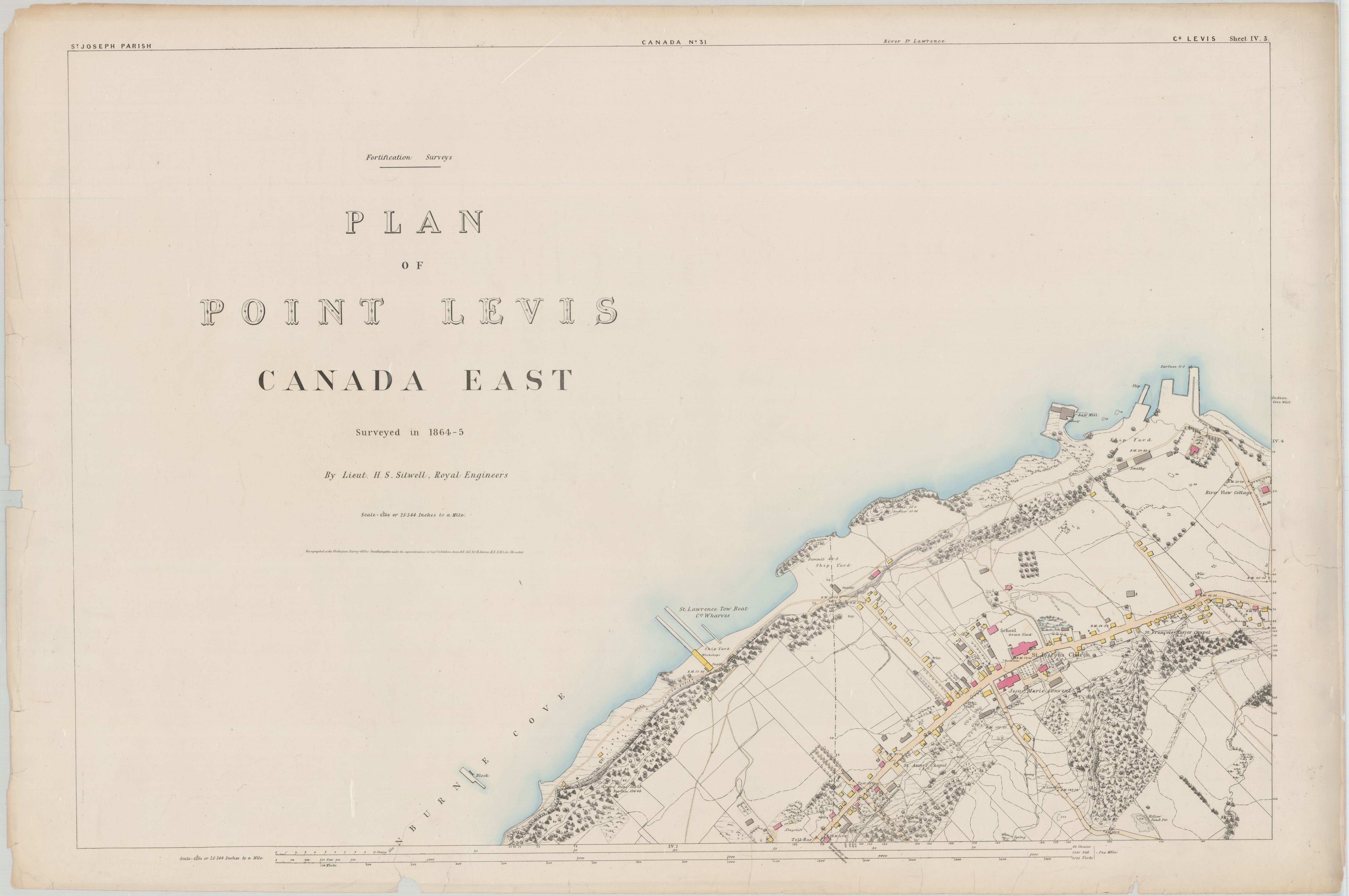 Voici à quoi ressemblait le coin tel qu’illustré sur ce Plan of Point Levis Canada East, relevé par le lieutenant H. S. Sitwell en 1864-5.